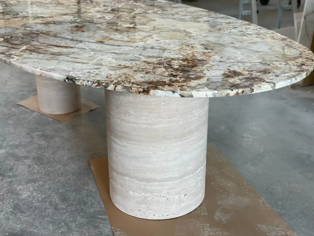 Installée au cœur du Var depuis 2010, entre Toulon et Hyères, La Marbrerie de La Crau (MdLC Select) s'est imposée comme le partenaire incontournable des marques de luxe et de prestige. Forts de plus d'une décennie d'expérience, nous avons développé une expertise unique : la sélection méticuleuse de marbres, onyx et pierres naturelles rares, le façonnage d'éléments sur mesure et la fabrication de revêtements haut de gamme pour sols et murs.