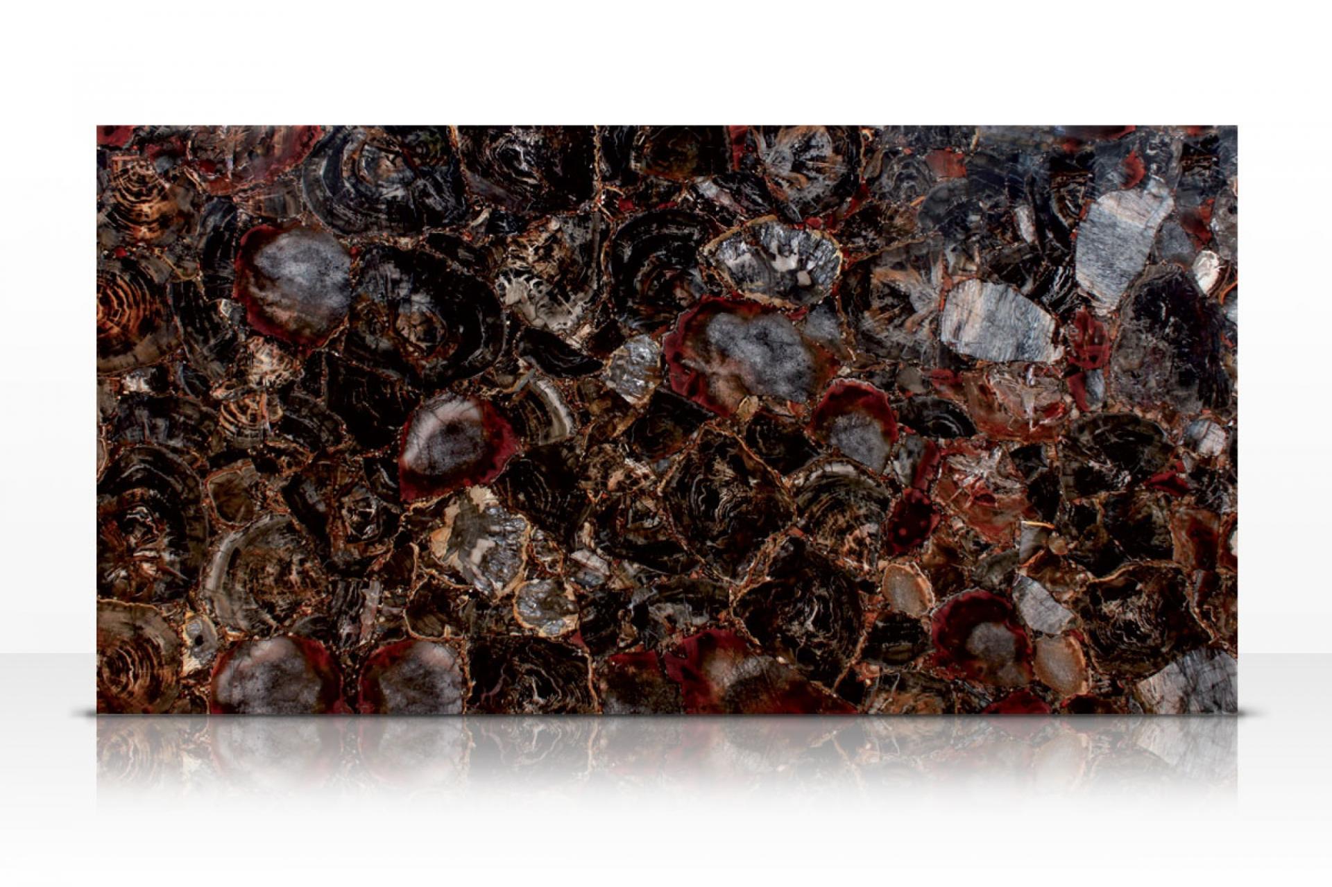 Black Petrified Wood pierre semi-précieuse, s'emploie pour rêvetements muraux, agencements intérieurs, salles de bains, cuisines et dallages.