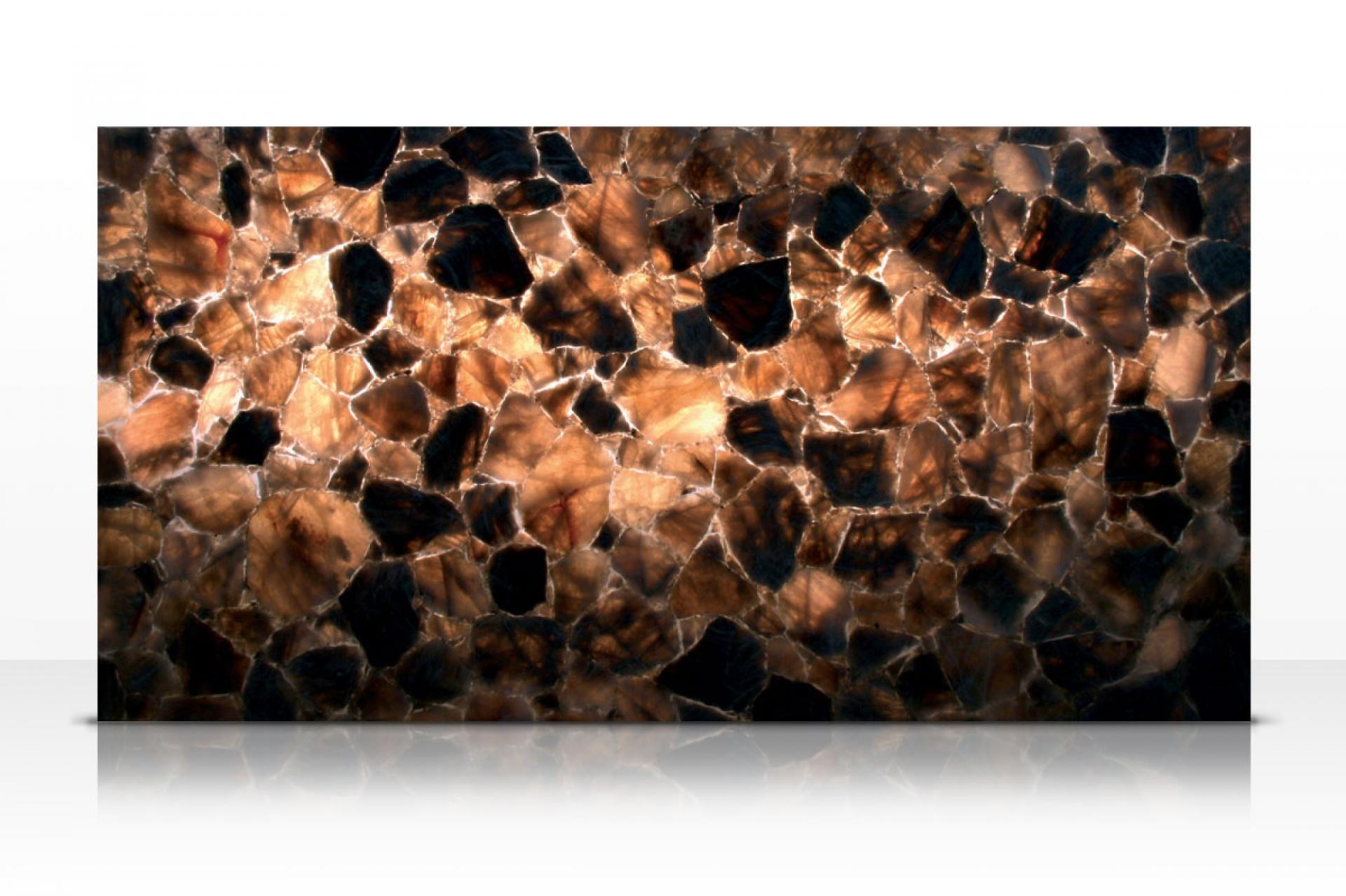 Quartz Bleu pierre semi-précieuse rétroéclairable, s'emploie pour rêvetements muraux, agencements intérieurs, salles de bains, cuisines et dallages.