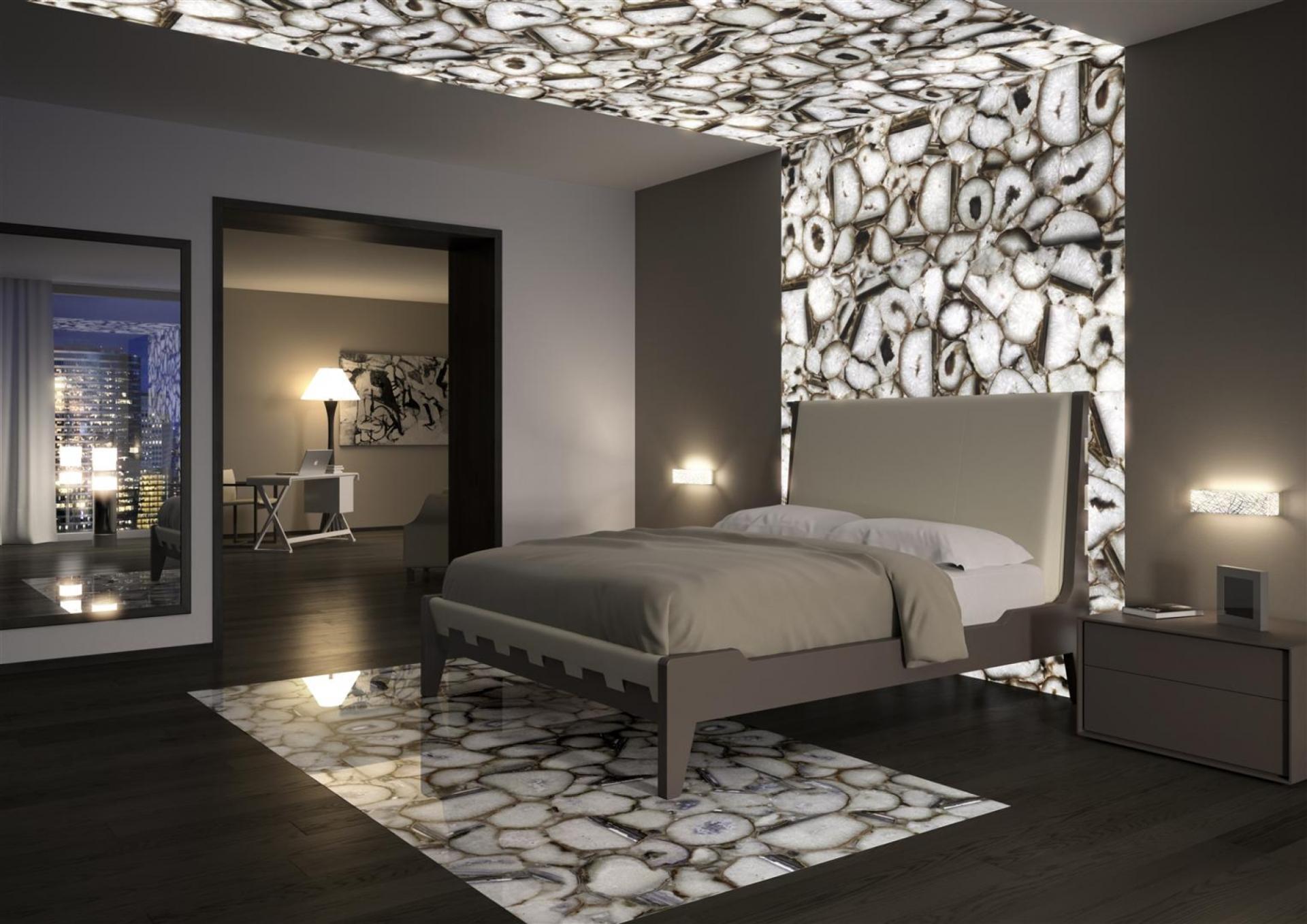 Décoration sol mur et plafond en pierre semi-précieuse rétro-éclairée Crystal Agate pour une chambre