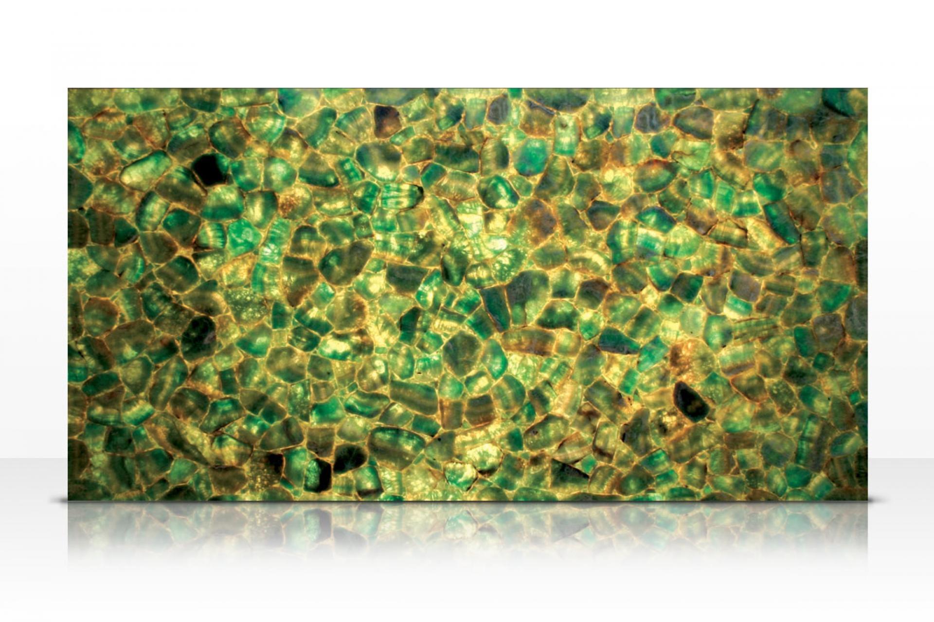 Emerald Fluorite pierre semi-précieuse rétroéclairable, s'emploie pour rêvetements muraux, agencements intérieurs, salles de bains, cuisines et dallages.
