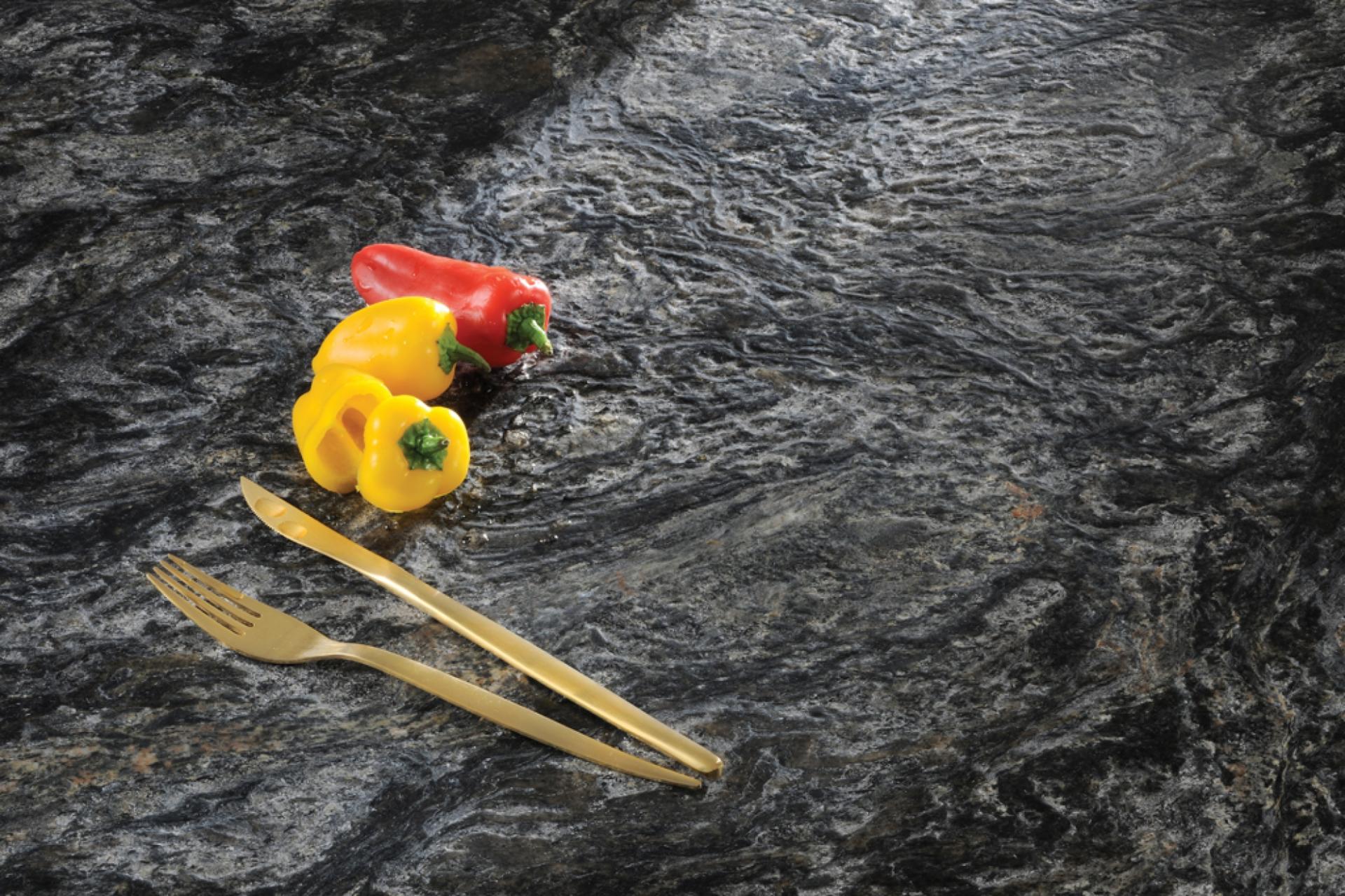 Le granit Kosmus est un granit mélangeant deux couleurs principales le noir et le gris argent. Cependant lorsqu'on s'attarde un peu plus sur cette pierre naturelle, on peut remarquer de beaux reflets brillants légèrement colorés de rouge ou d'or. Un matériau d'exception qui réserve à une décoration quelques surprises visuelles. Il peut être utilisé pour des dallages intérieurs, des revêtements muraux, dans la salle de bains, la cuisine.