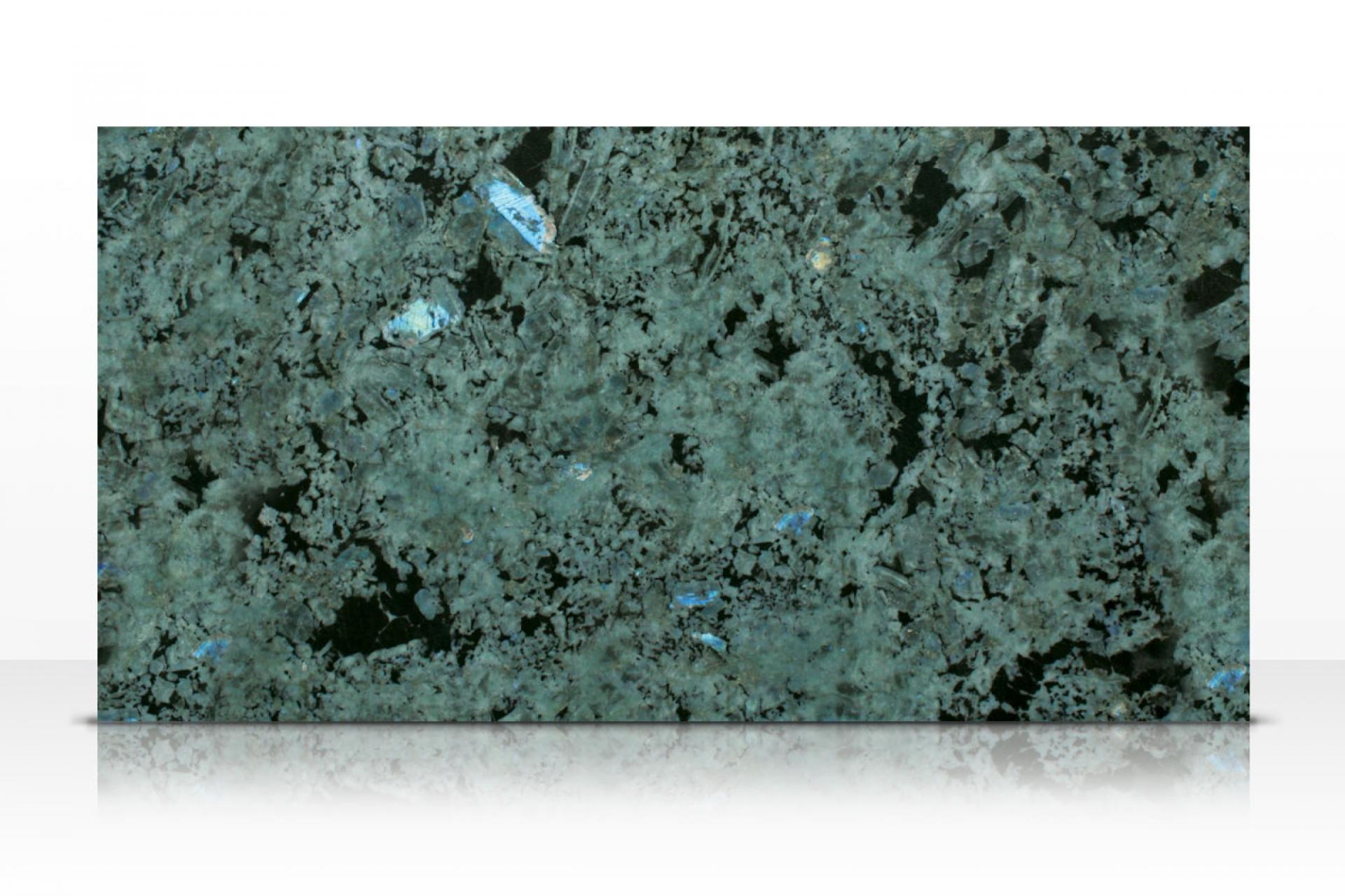 Le granit Labradorite Big Blue est un granit de Madagascar. Ce matériau d'exception de couleur bleu-vert avec de légères touches de noir a la particularité d'avoir de beaux reflets arc-en-ciel en fonction de la lumière qu'il reçoit. Cet atout décoratif apporte prestige et éclat à un espace. Ce granit peut être utilisé pour des dallages intérieurs, des revêtements muraux, dans la salle de bains, la cuisine, et pour bien d'autres projets.