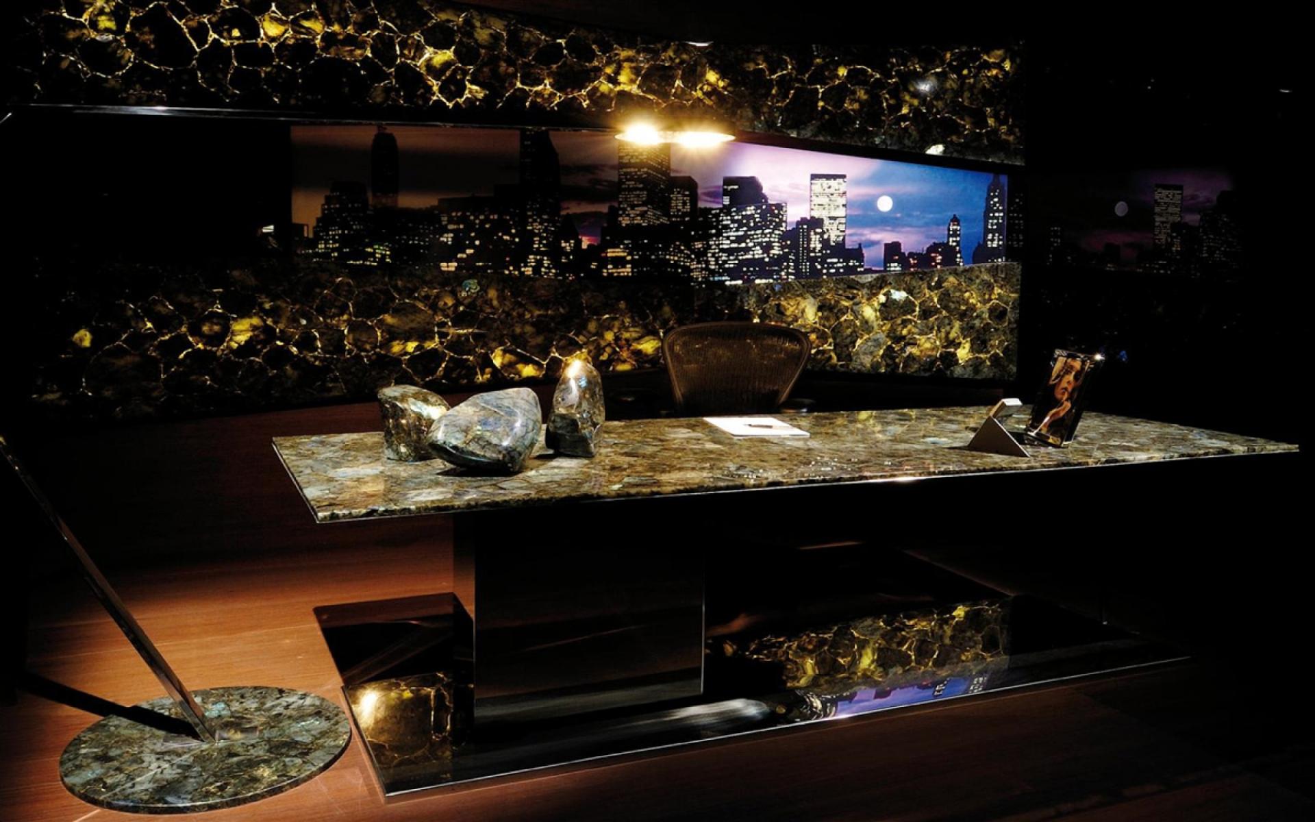 Plateau de table en granit Labradorite pour agencement de bureaux haut de gamme