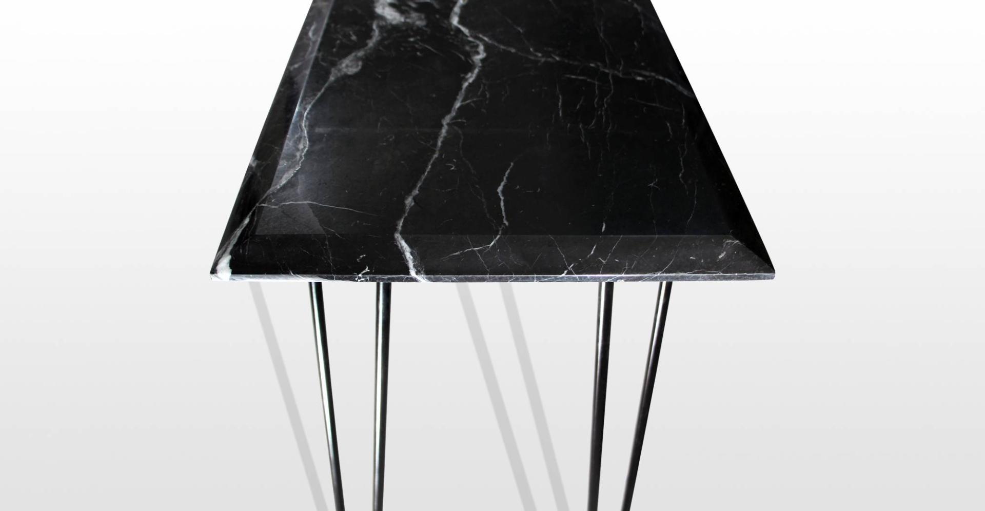 Mabel: console en mabre noir design, pieds tête d'épingle laqué noir mat