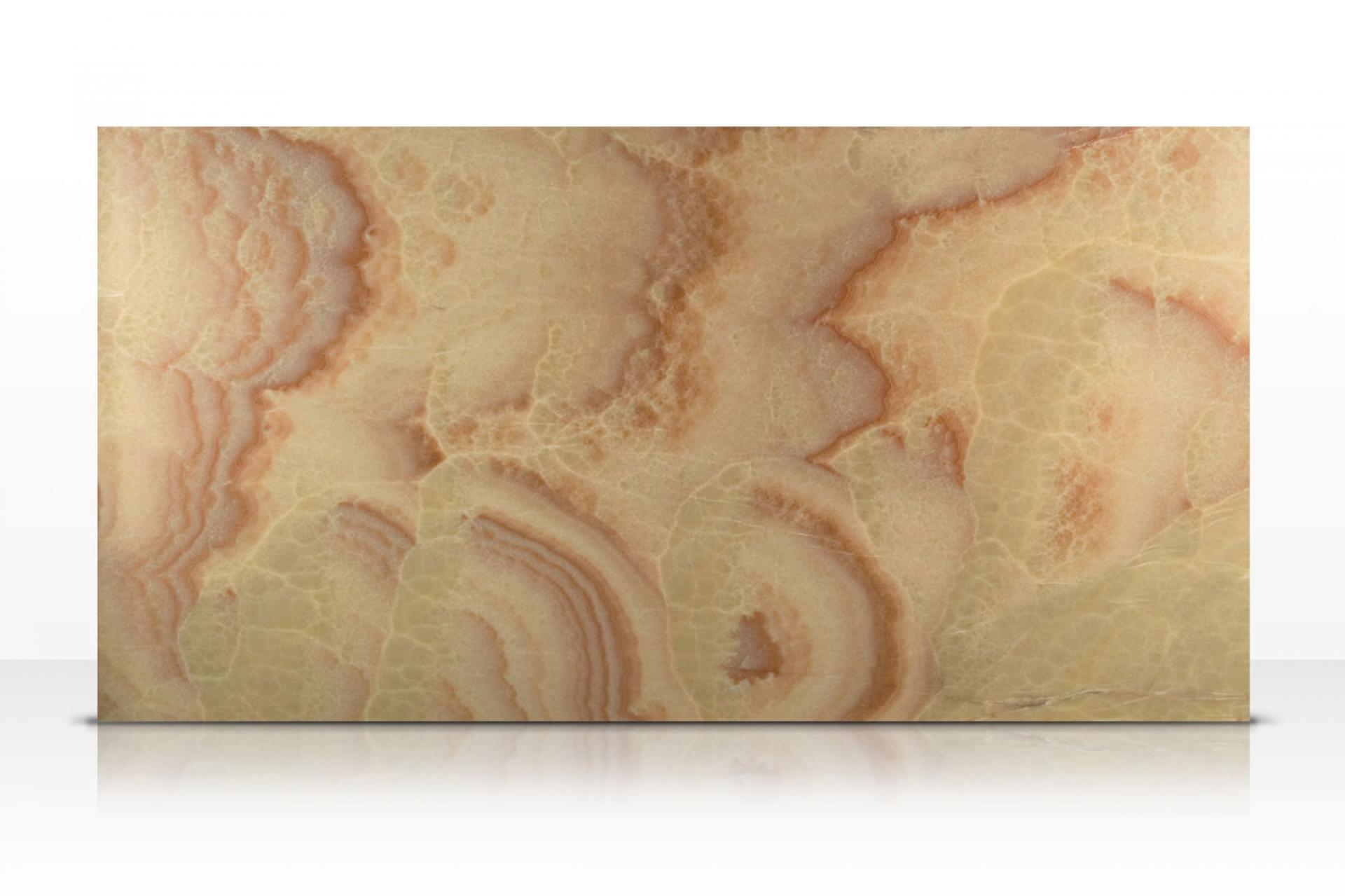 L'Onyx Miel est un onyx provenant d'Iran, possédant une couleur se déclinant du jaune pâle au jaune orangé avec des reflets dorés faisant penser à la douceur du miel, d'où son nom. Cette pierre naturelle est issue de l'agate qui est une pierre fine qui se caractérise par sa variété de couleur au sein d'un même bloc de pierre. La présence de cet onyx crée une ambiance chaleureuse et lumineuse