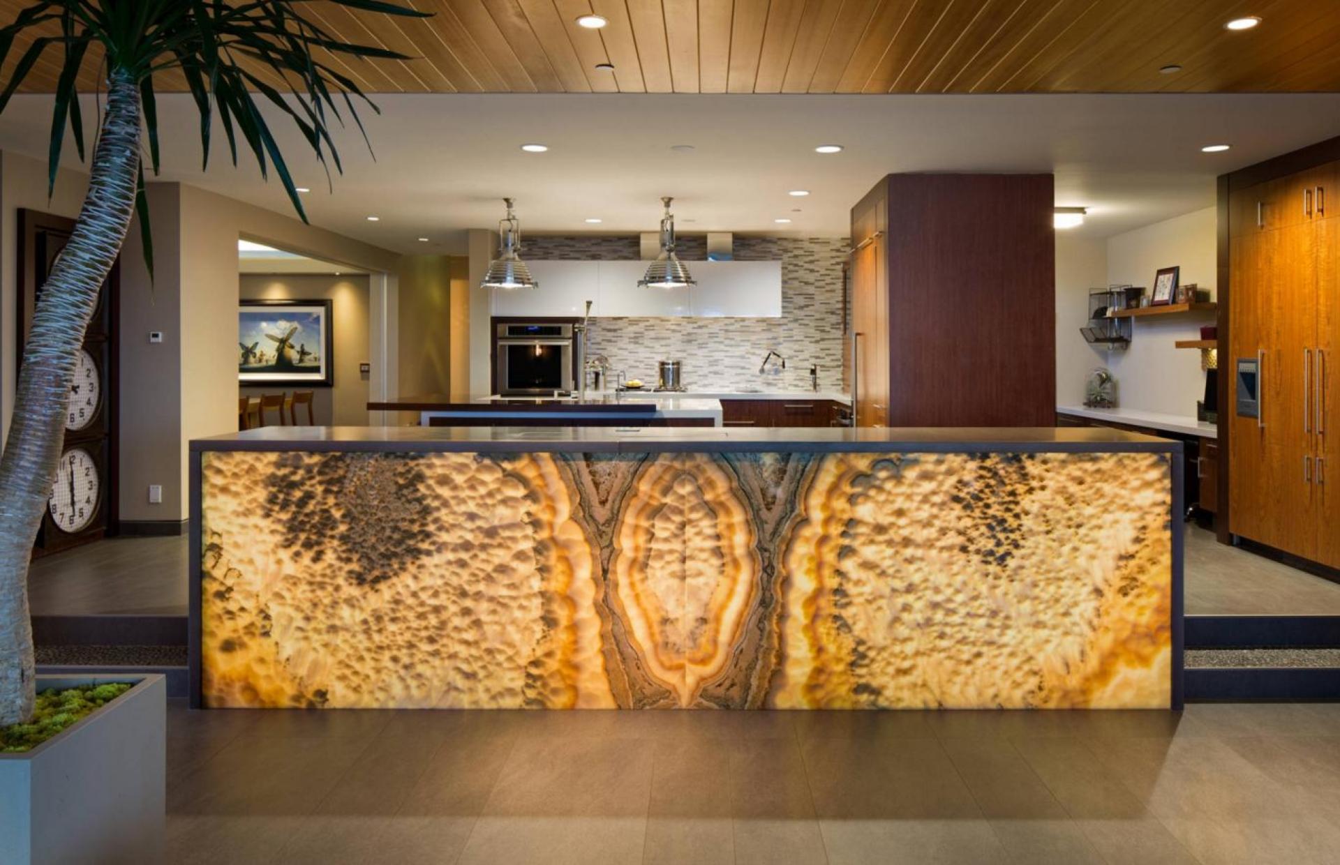Onyx Silver plan de travail rétroéclairé,pour un îlot de cuisine lumineux et spectaculaire.