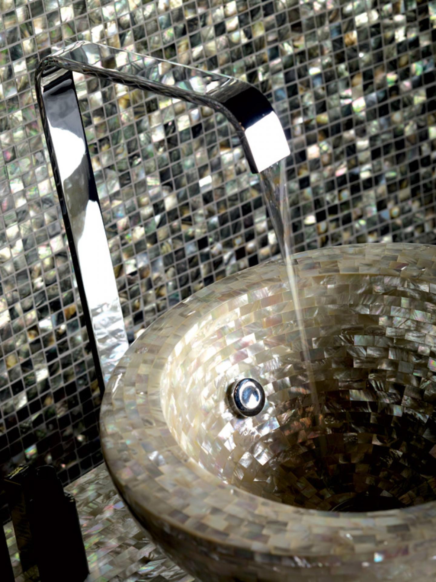 Vasque massive habillée de nacre White Mother of Pearl Rainbow